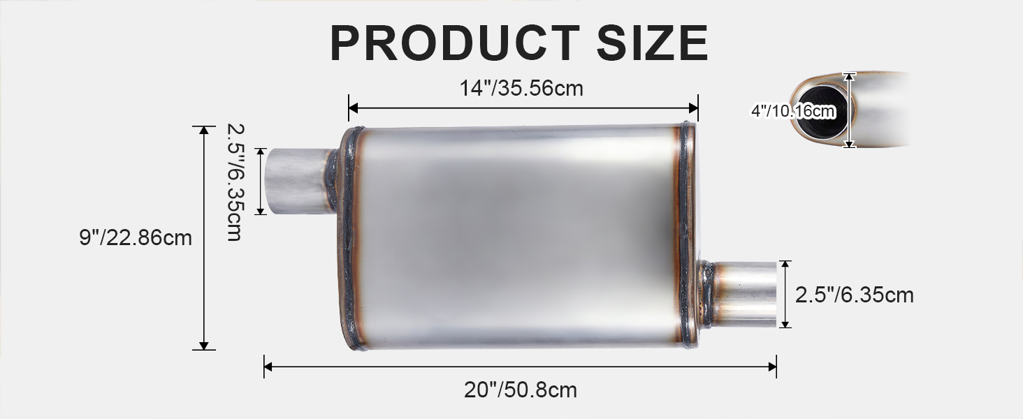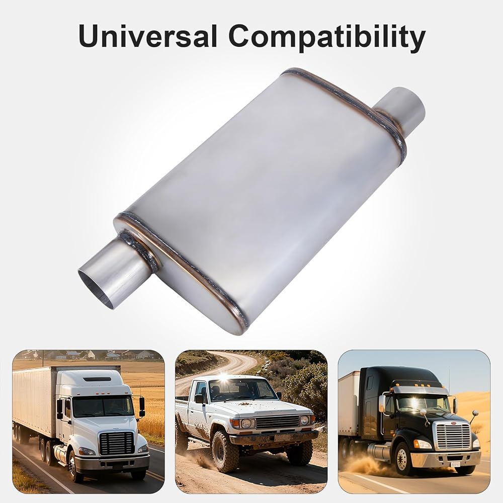 WIDE COMPATIBILITY: This universal muffler is suitable for a variety of common vehicle types, including car, trucks, and SUVs, meeting the exhaust system upgrade needs of most vehicles.