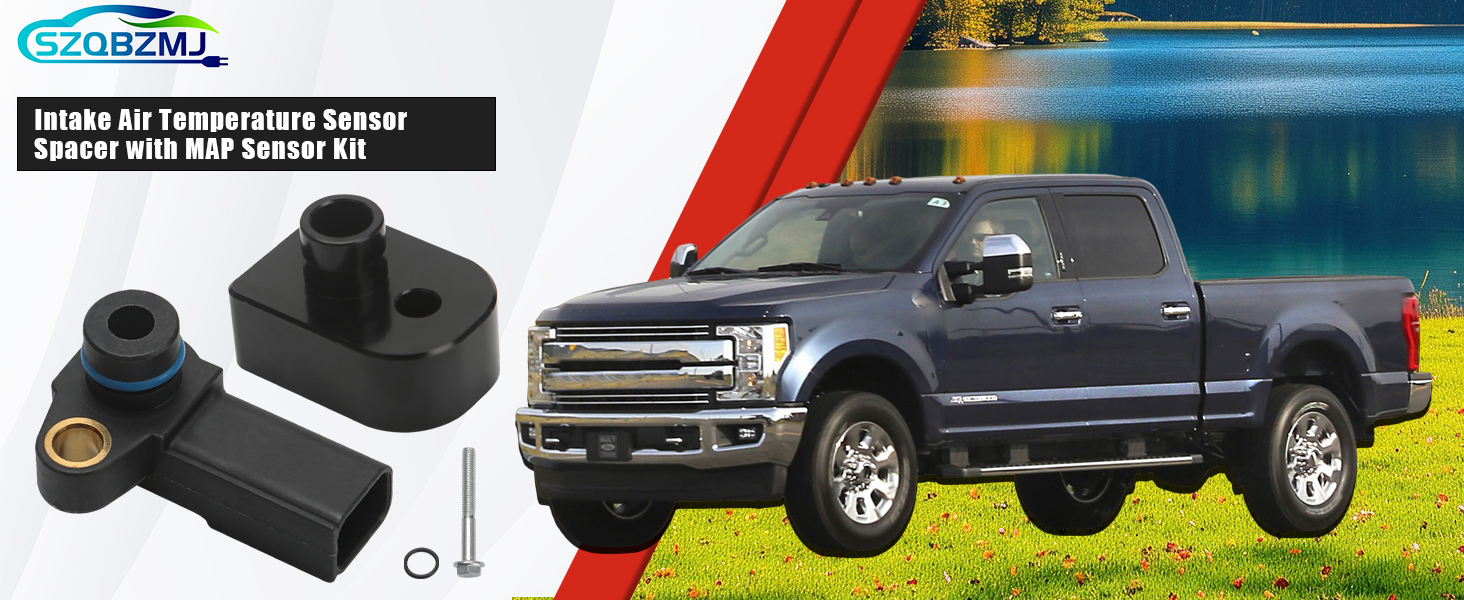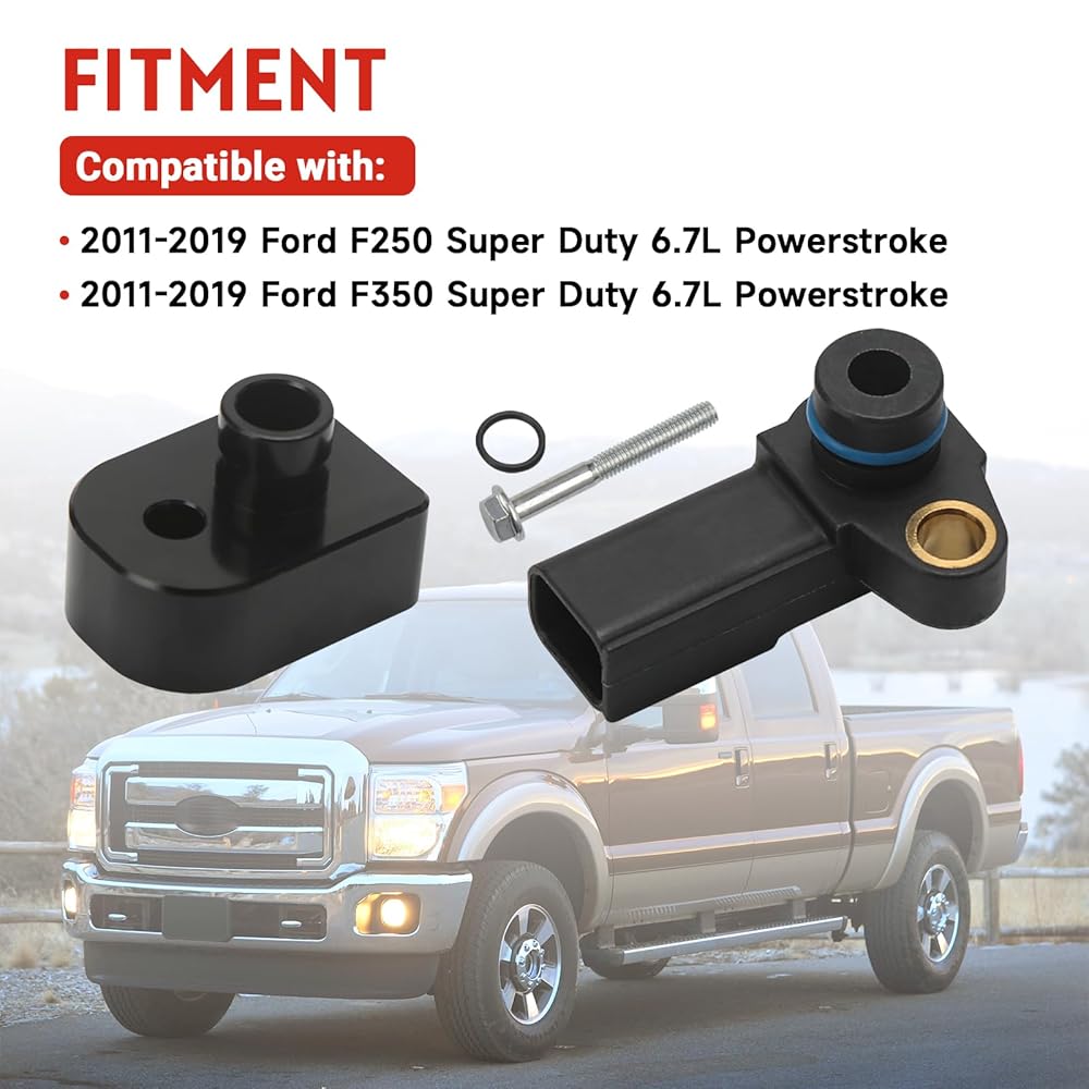 Intake Air Temperature Sensor Spacer with MAP Sensor Kit Compatible with Ford F250 F350 Super Duty 2011-2019 6.7L Diesel Replace# BC3Z-9F479-A BC3Z-9F479-B BC3Q-9F479-AD
