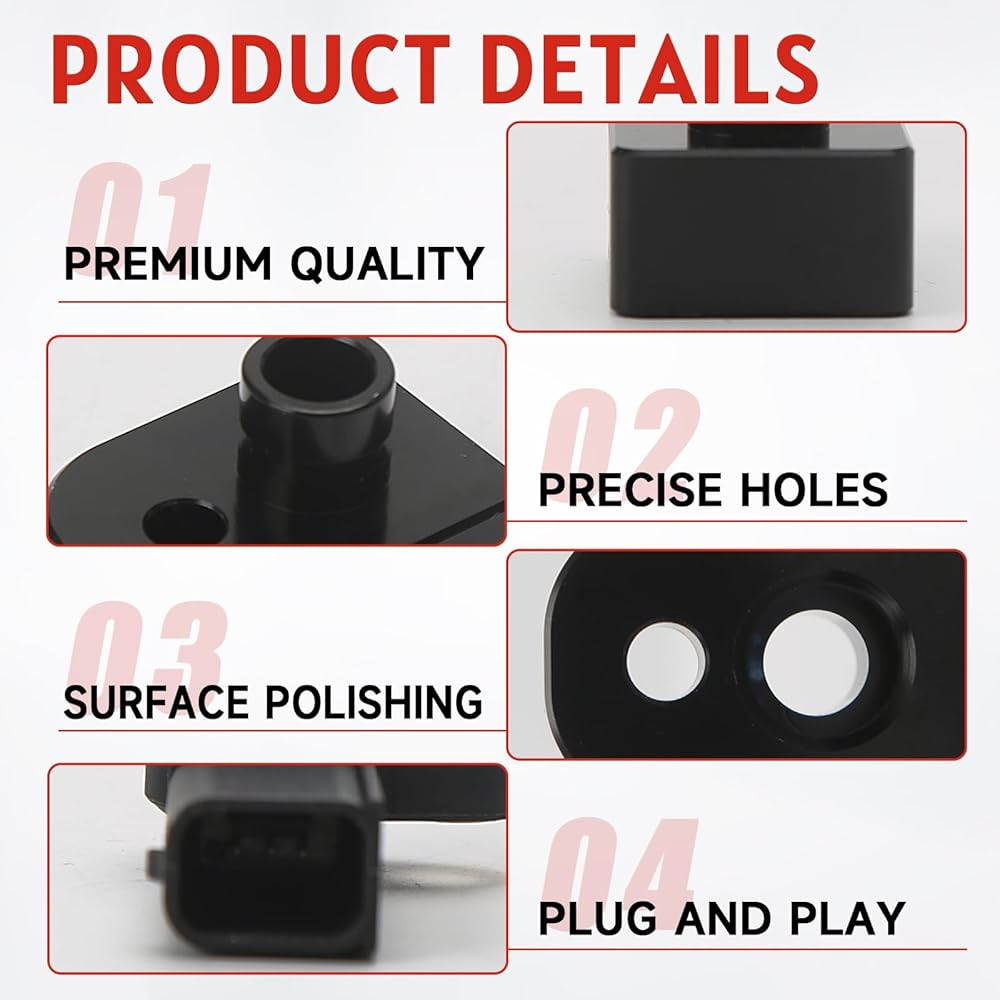 HIGH QUALITY: The Intake Air Temperature Sensor Spacer with MAP Sensor Kit is crafted from high-strength material, this spacer is both lightweight and tough. Features a black anodized coating that provides excellent wear resistance, it resists heat and vibration in the engine bay, ensuring long-lasting performance