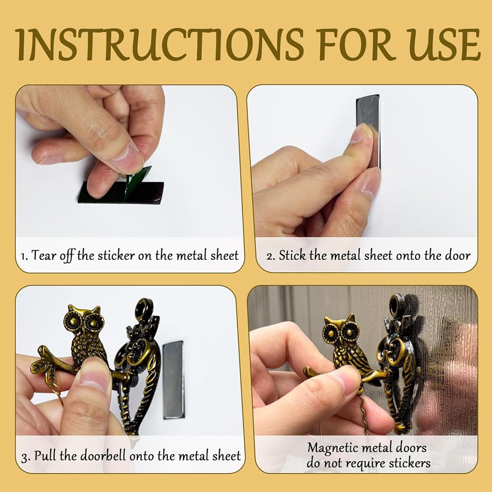 Hassle Free Installation This vintage metal doorbell is easy to mount with magnetic adhesive and tape, plus a built-in hook hole for flexible placement; removable and repositionable without scratching door surfaces.