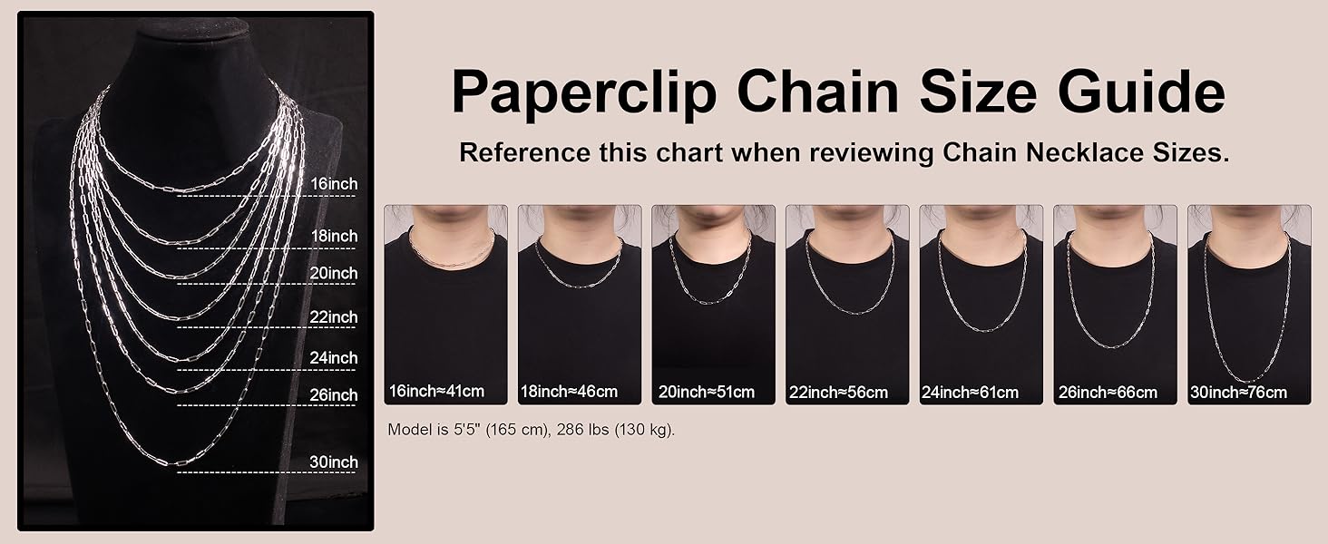 『Suitable chain』-The silver paperclip necklace has a smooth, shiny surface that can protect your neck very well.High-quality polishing process that gives the silver chain necklace perfect lines and luster, making it smooth to the touch.This paperclip necklace is lead-free and nickel-free, making it suitable for sensitive skin.This strong and stylish necklace is meant for everyday wear and can be worn with a pendant or layered with other necklaces.