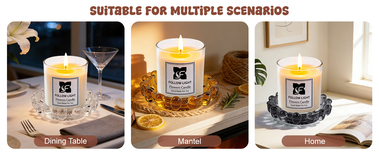 🔮 Premium Glass Material: Crafted from durable, high-quality glass, the material ensures it catches wax effectively for clean surfaces, doubling as a functional candle plate that resists scratches. This glass candle dish combines luxury with practicality, rivaling high-end crystal candle holders without the cost.