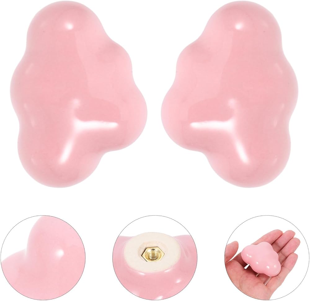 Mikinona Cloud Shape Ceramic Drawer Knobs for ’ Room, Vintage Cabinet Pull Handles Rounded Edges, 2pcs Light Pink Ceramic Wardrobe Door Handles for ’s Furniture