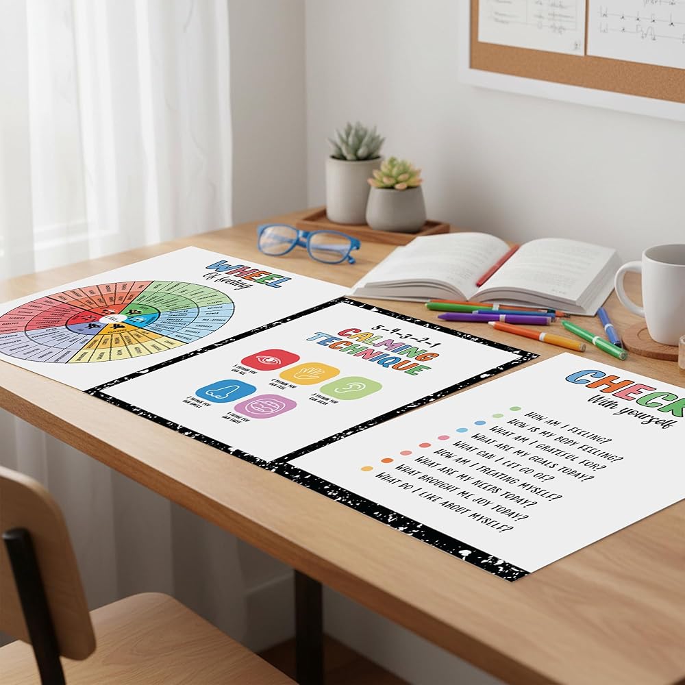 ✨ Durable Quality Posters – Printed on premium paper, each classroom poster measures 10x12 inches, ensuring long-lasting use for calm down corner supplies, coping skills poster, or cozy quiet corner for classroom.