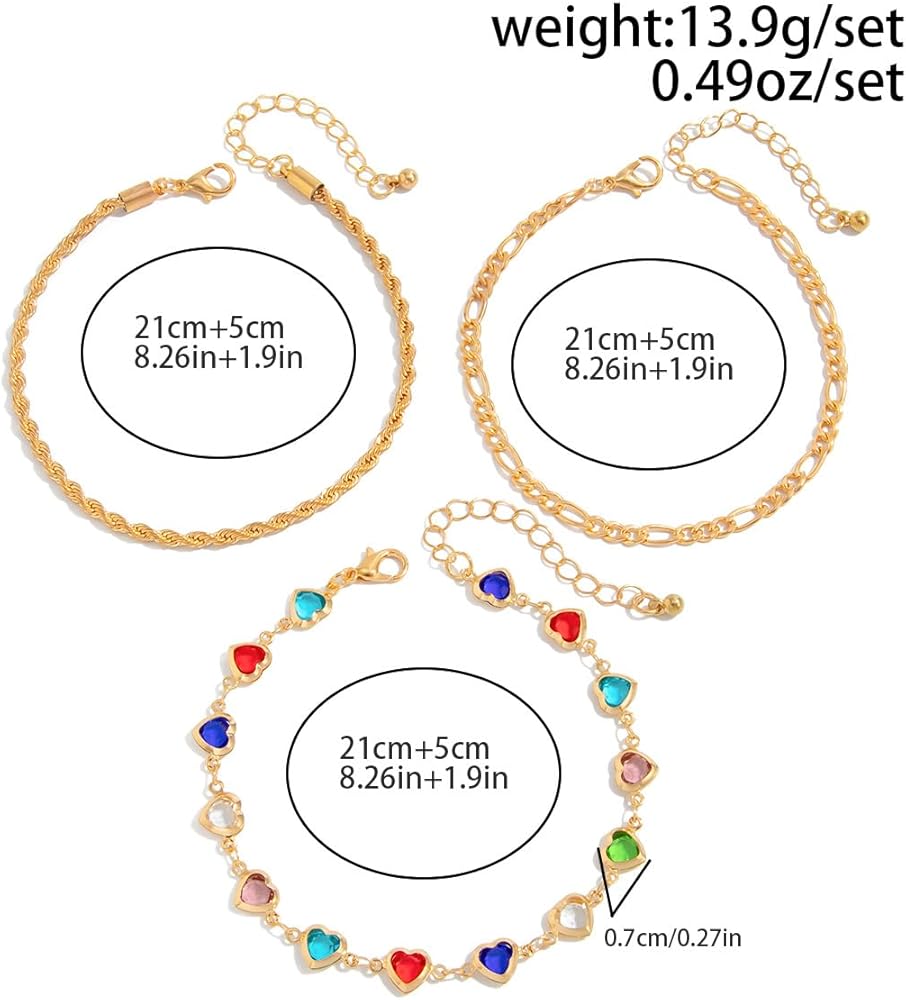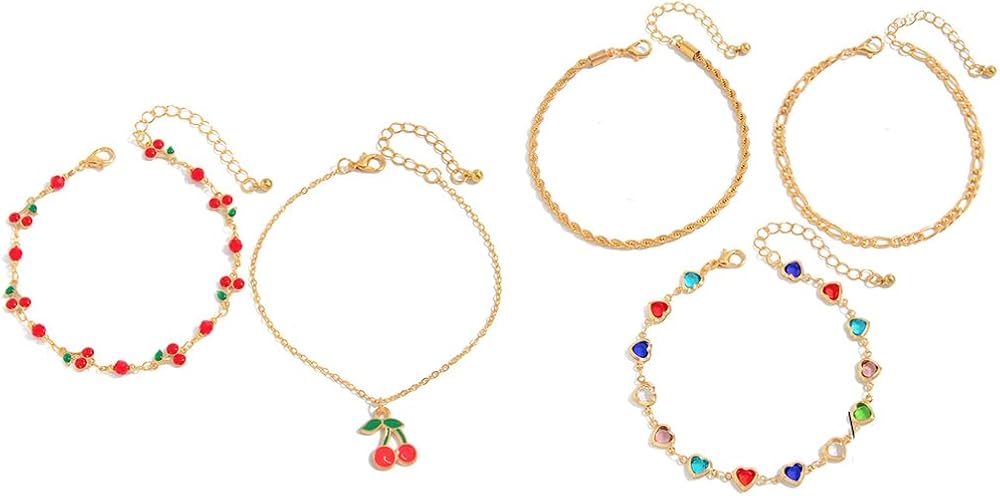 Complete 5-Piece Set: Includes 5 distinct anklet styles (crystal, drip oil cherry, wheat braid, etc.) for versatile mix-and-match styling.