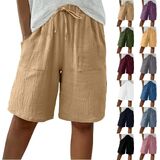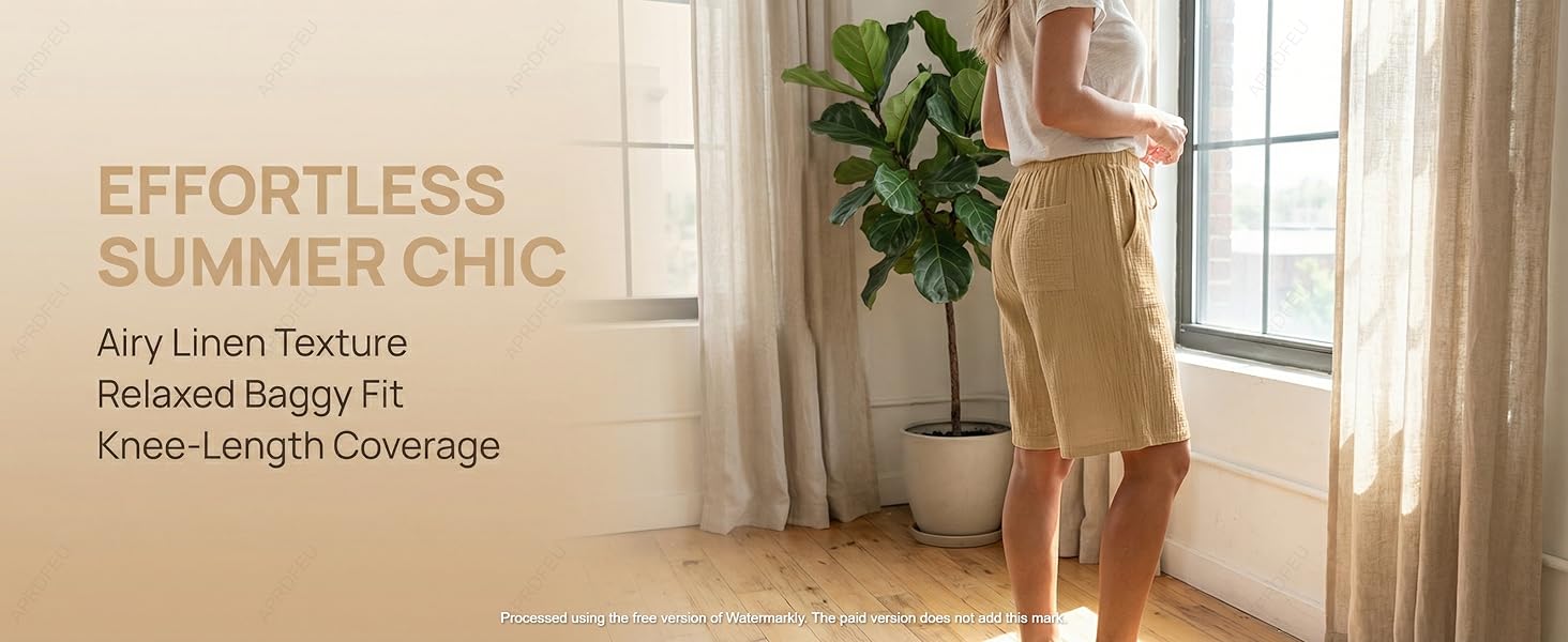 مناسب بشكل مريح لجميع أنواع الجسم: تم تصميم شورت البرمودا هذا بتصميم فضفاض واسع الساق ورباط عالي الخصر، وهو يوفر ملاءمة غير مقيدة للأشكال على شكل كمثرى أو ذات حجم كبير. حزام الخصر المرن يحل مشكلة الخصر الضيق، مما يضمن حرية الحركة للمشي أو الأعمال المنزلية.