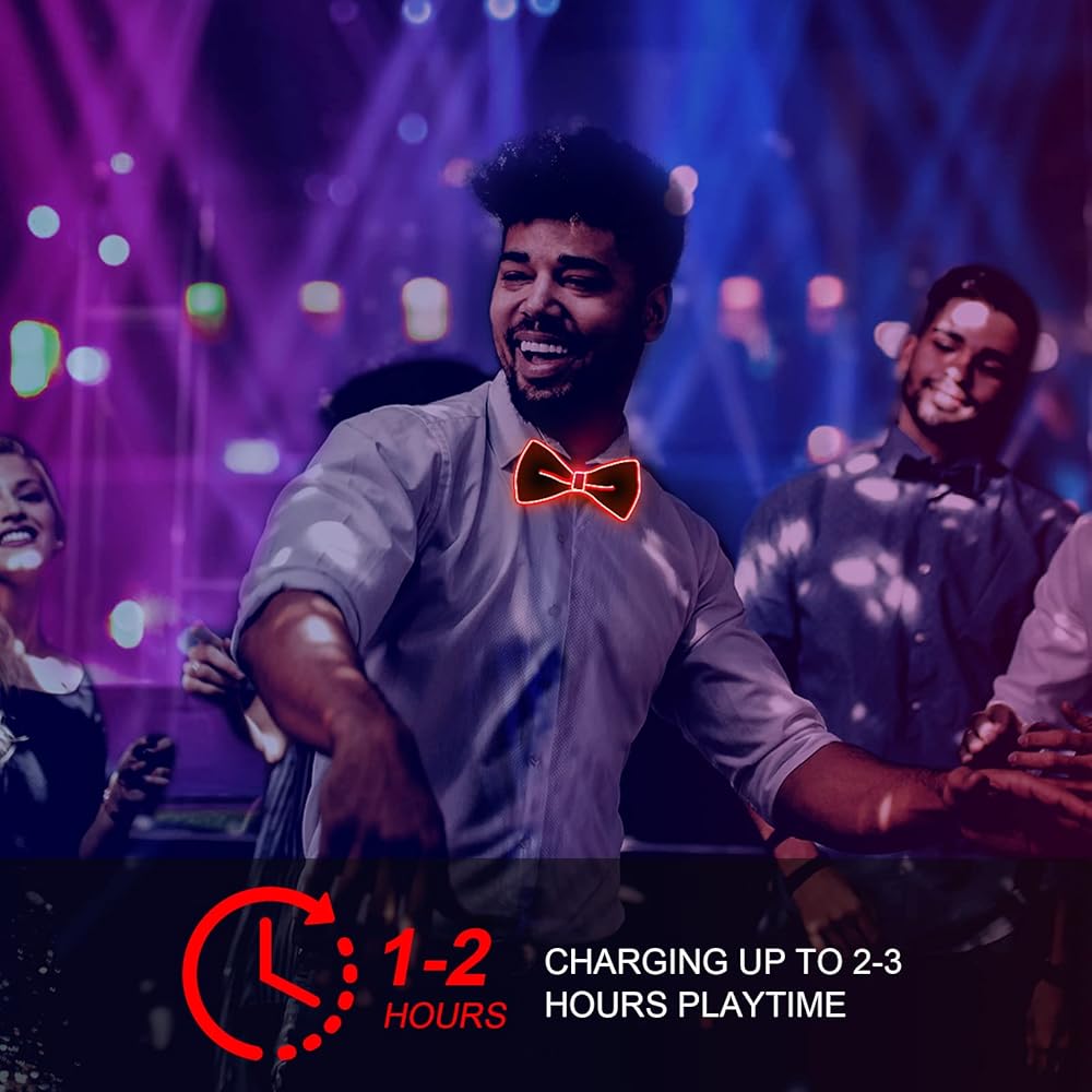🌟【GOOD PERFORMANCE】The LED light-emitting bowtie has good performance and can continue to emit light for a long time. The light will not be dazzling, there is no visual impairment, and it is comfortable to wear. And the light emitted is still visible under other lights, and the effect is excellent.