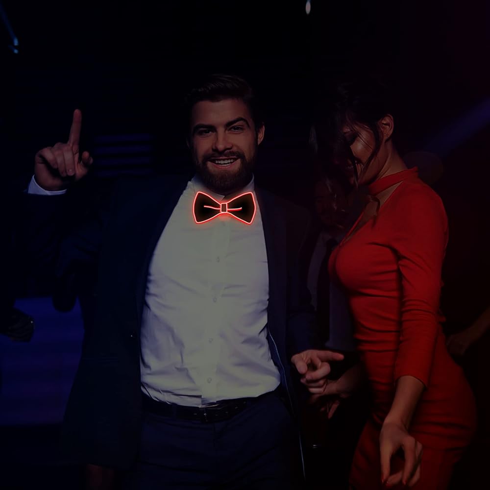 💥【3 MODES】This LED Bow Tie has three lighting modes: long light, fast flash, slow flash. Three lighting modes can be controlled with one button to meet your various needs. Excellent lighting effects, make you stand out from the crowd.