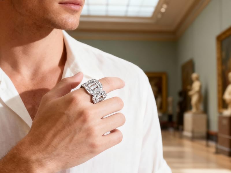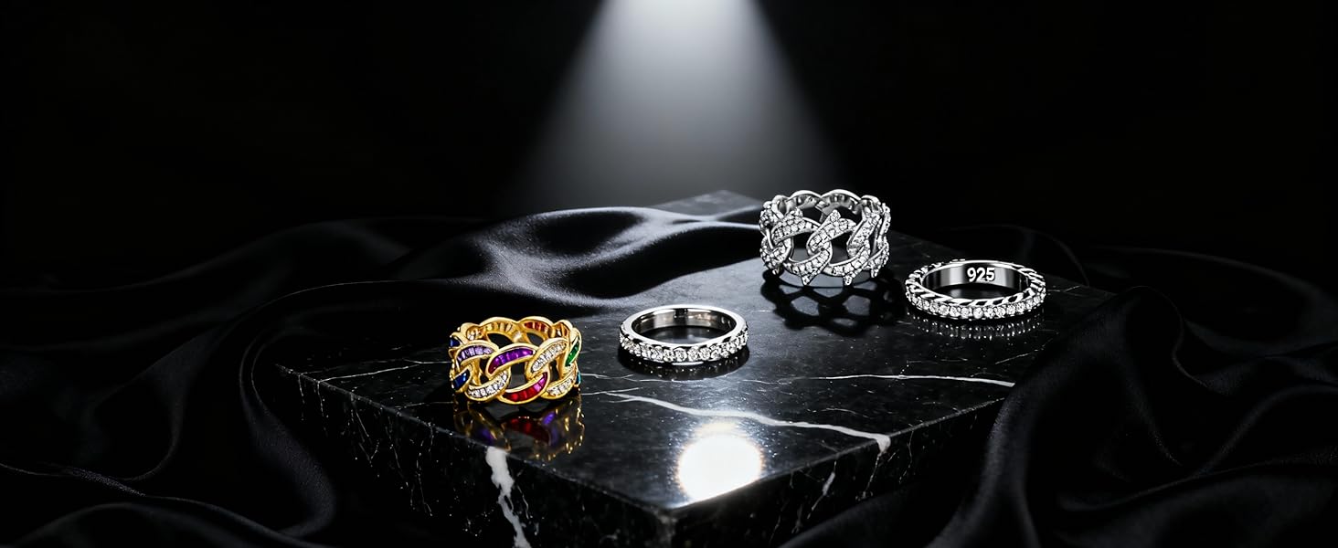 【Quality Materials】Crafted with premium moissanite stones, this ring offers urban brilliance with everyday durability. Each carefully set stone enhances the chain-inspired design's luminous quality. The scratch-resistant composition maintains its polished appearance.