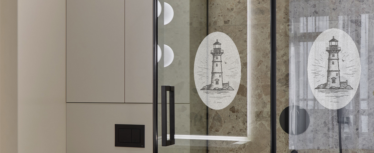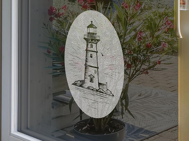 Style: ChicSkin oval glass cling features classic architecture design, Lighthouse. Each anti-collision silvery sticker transforms your door or window glass into a stunning exhibit