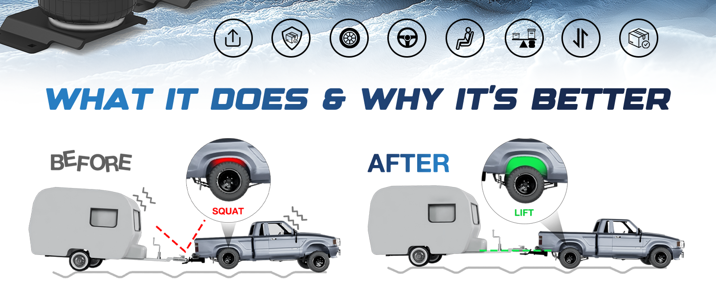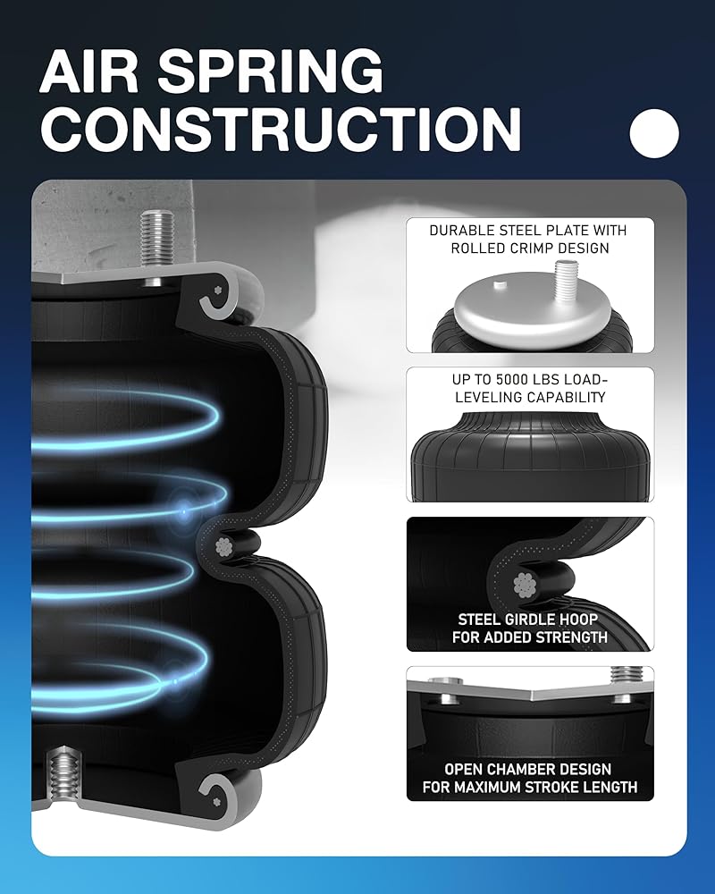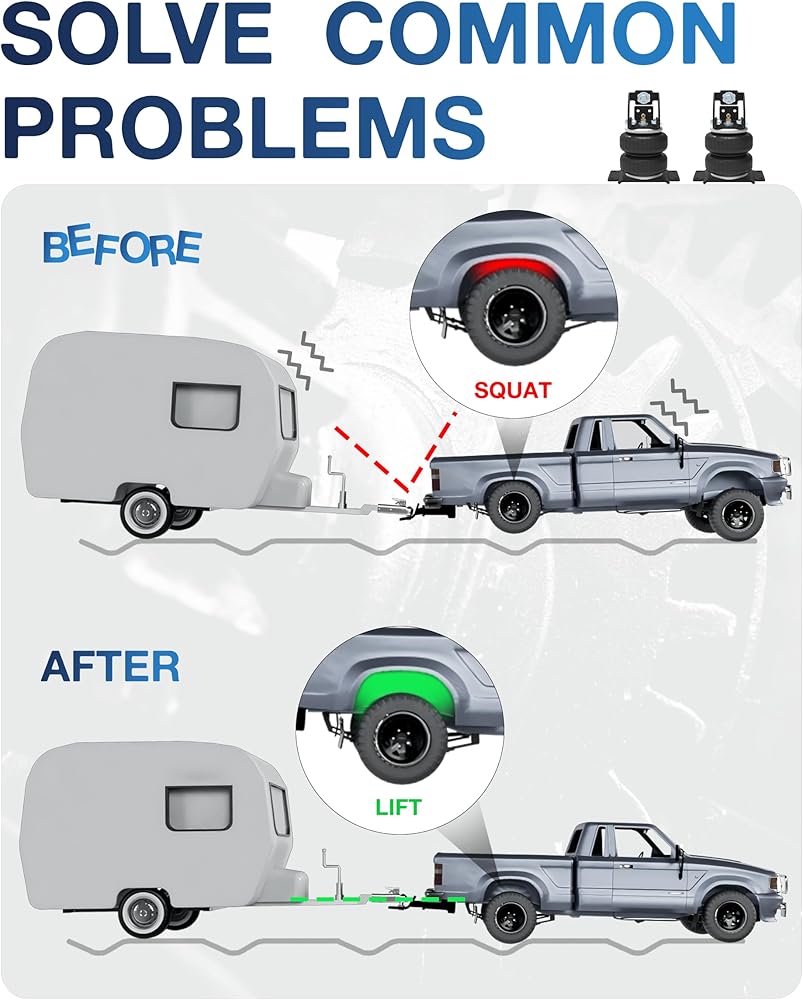 Optimized Performance - This Air Helper Spring Kit helps maximizes your vehicle's stability when carrying heavy loads and increases its load-carrying capacity. Expertly designed to improve stability, ride quality, and braking effectiveness, these air helper springs operate by customizing air pressure to adapt to varying loads. Eliminate inter-leaf friction to enhancing ride quality and improving steering and braking control preventing unwanted bottoming out experiences