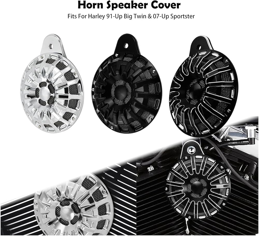 Motorcycle Horn Speaker Cover Black/Chrome Horns Cap Compatible with Harley Big Twin 1991-Up Touring Road King Softail Dyna Sportster 07-Up
