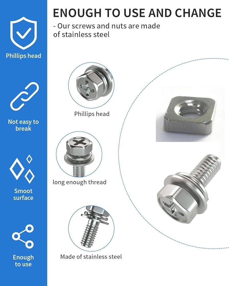 【PREMIUM QUALITY】Motorcycle Battery Terminal Nuts and Bolt are made of 304 Stainless Steel and Carbon Steel with Zinc Plated.Strong, durable, acid-resistance, high tensile strength and aging resistance.