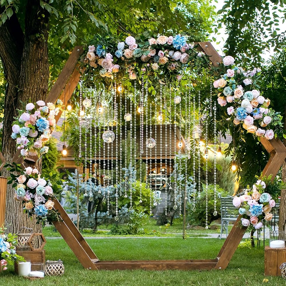 Design your space with beaded garland suitable for any venue. Whether it's door curtains, balcony hangings, or garden decorations, these crystals enhance both indoor and outdoor settings. Their versatility allows them to serve as hanging crystal ornaments across multiple environments