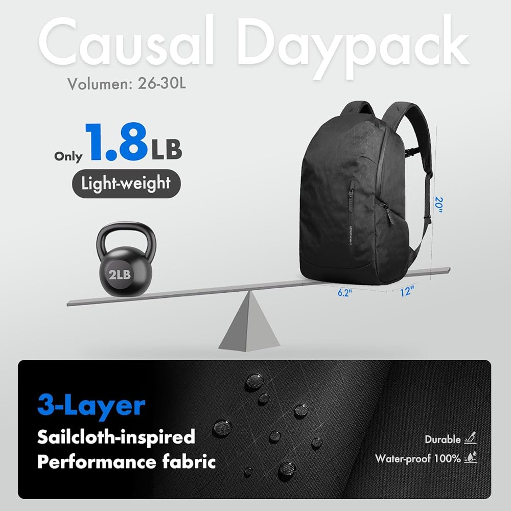 【Premium 3-Layer Sailcloth-Inspired Fabric】 Crafted from high-performance 3-layer sailcloth-inspired material, this laptop backpack is fully waterproof, lightweight, and built for strength. Reinforced with structural enhancement technology, it resists deformation under pressure and delivers a premium texture suitable for daily commuting, or outdoor use