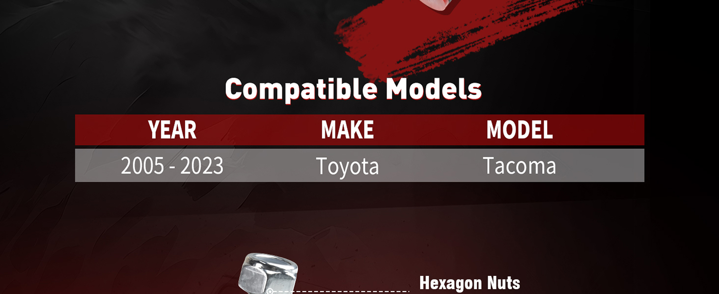 Vehicle Compatibility:Front upper control arms compatible for 2005 - 2023 Toyota Tacoma(Please note: during installation, the grease fittings must face upward)