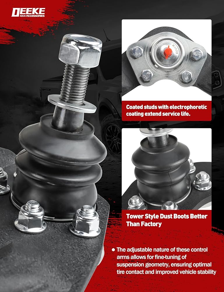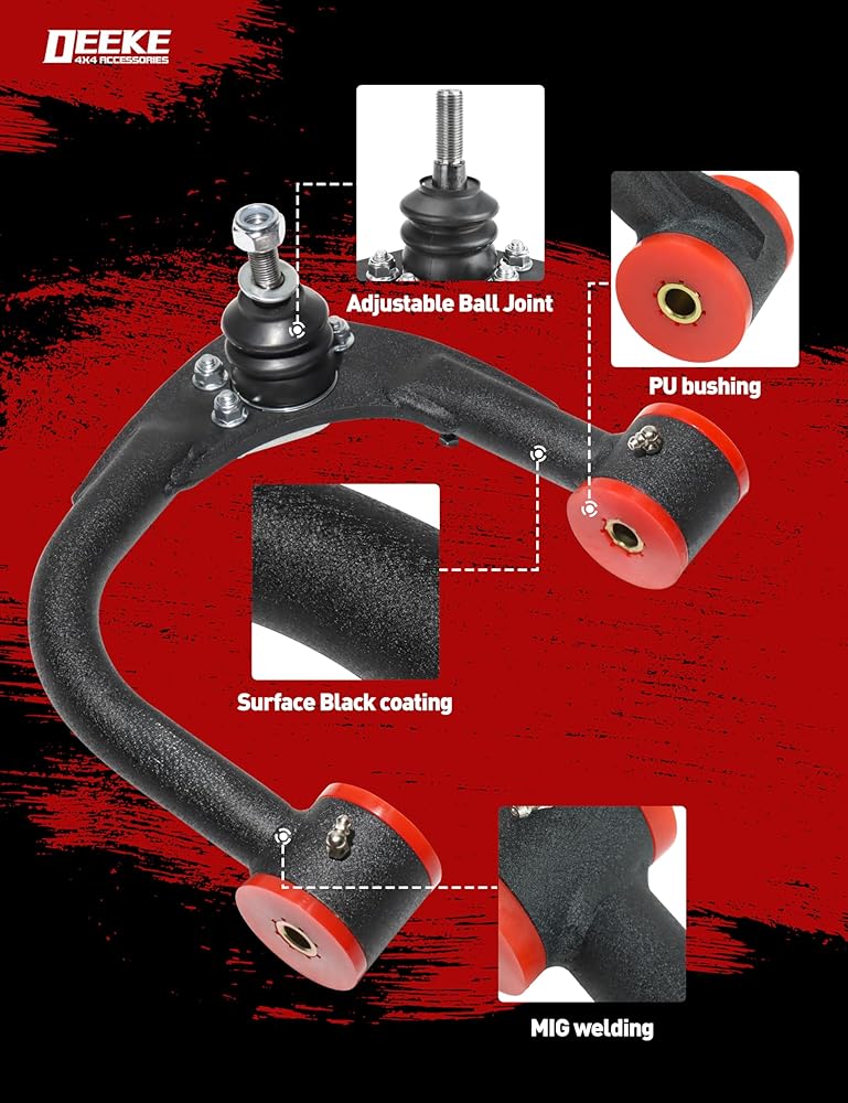 Optimized for 1–4 Inch Lift Kits: Designed to restore proper caster angle and ball joint geometry after lifting. Compatible with 1–4 inch lift or leveling kits, improving steering response, reducing uneven tire wear, and enhancing overall handling stability.