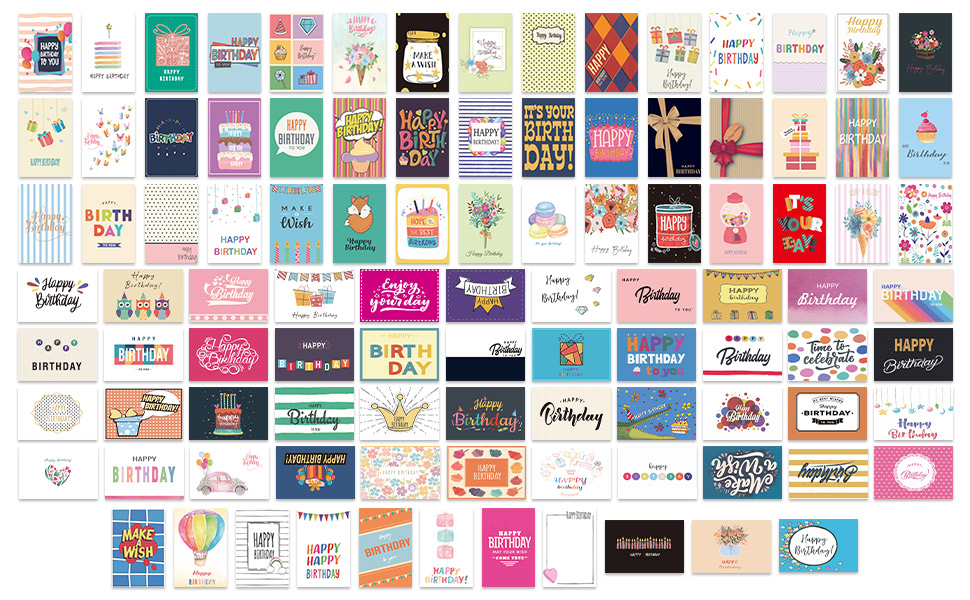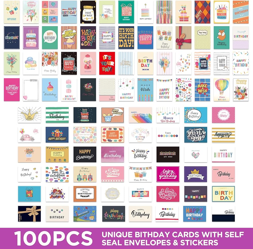 ● 100 UNIQUE 4x6 BIRTHDAY CARDS Discover the perfect card for everyone! This value pack includes 100 distinct and artfully designed birthday cards with no duplicate designs, ensuring a fresh and personalized greeting for every recipient on your list.