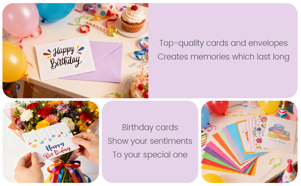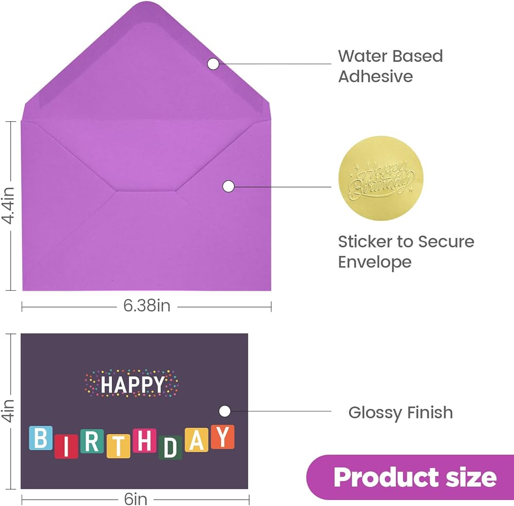 ● VIBRANT DESIGNS FOR ALL AGES & STYLES Our collection features a wide array of vibrant and modern designs suitable for all ages and tastes. Whether for family, friends, colleagues, you'll find the ideal card to match the personality of the birthday celebrant.
