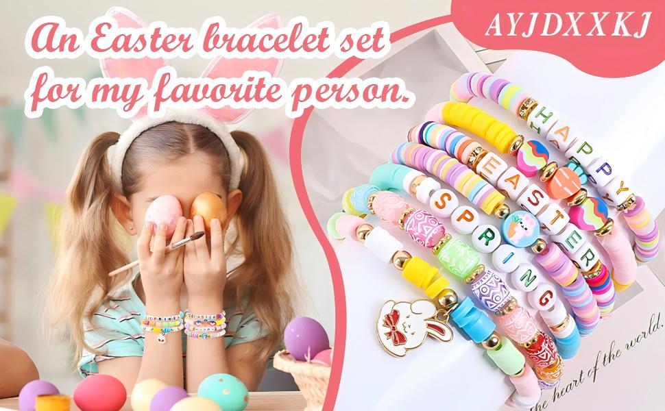 This Easter bracelet set features classic Easter elements - cute bunny charms, colorful Easter egg beads, and "Easter", "Happy" & "Spring" letter beads. As a standout piece of Easter jewelry, it also includes a dainty cross - styled bracelet that adds an elegant and unique touch to the collection. The vibrant color matching perfectly captures the joyful atmosphere of Easter, serving as lovely Easter decorations for your wrists while adding a warm and lively touch to your holiday look, and making you stand out in Easter gatherings.
