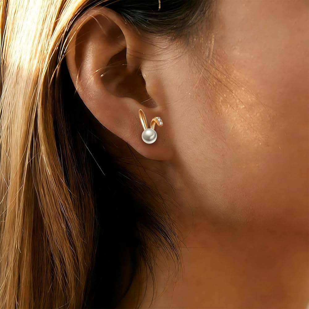 Chic & Dainty:Shiny gold-plated metal + a tiny pearl detail make these earrings cute and elegant—great for everyday wear or dressing up for brunch.
