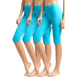 MOPAS Womens Basic Solid Biker Knee Length Shorts Spandex Yoga Leggings