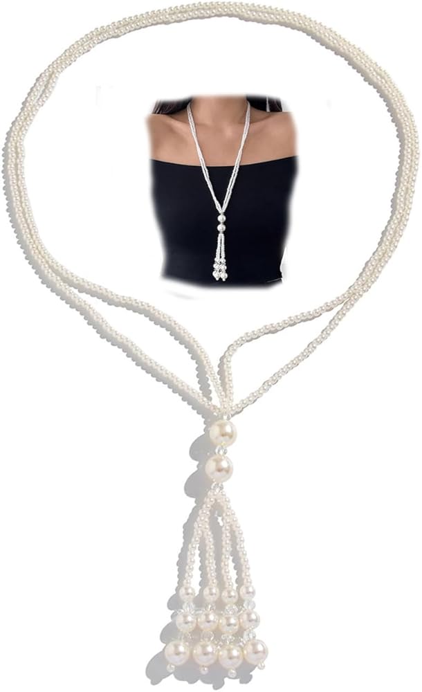 Look and Style:This long pearl chain necklace features big faux pearls with a creamy, smooth finish that looks just like real pearls, minus the fancy cost! The tassel and fringe details add a flowy, playful touch,and the Y-shaped design creates a sleek, flattering line that draws the eye down and nixes any plain neckline vibes