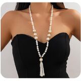 Unique Design:What makes this necklace stand out is its Y-shape and tassel combo—it's not your average pearl necklace! The long pendant style lets it hang ideally over sweaters or dresses, and the big pearl accents at the end of the tassels give it a chunky, statement-making feel without being too heavy