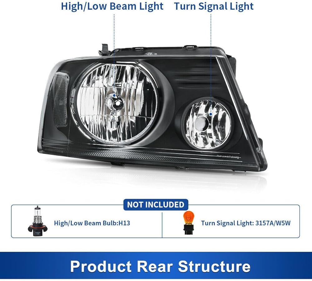 Headlight Black Housing Clear Corner fits Lamps All New Assemblies Popped Into Place and Lined up with the Mounting Bolts Exactly Right Re-Use Factory Bulb 5L3Z13008BA
