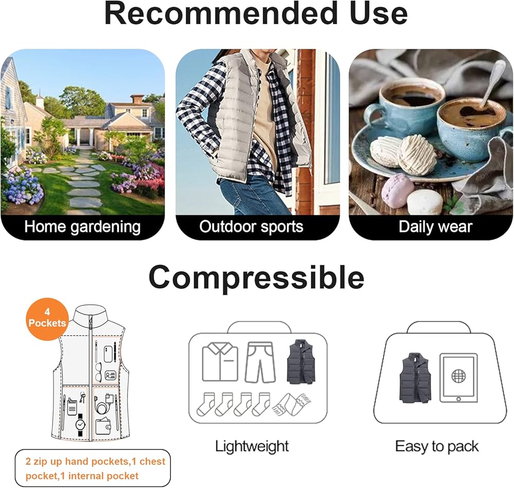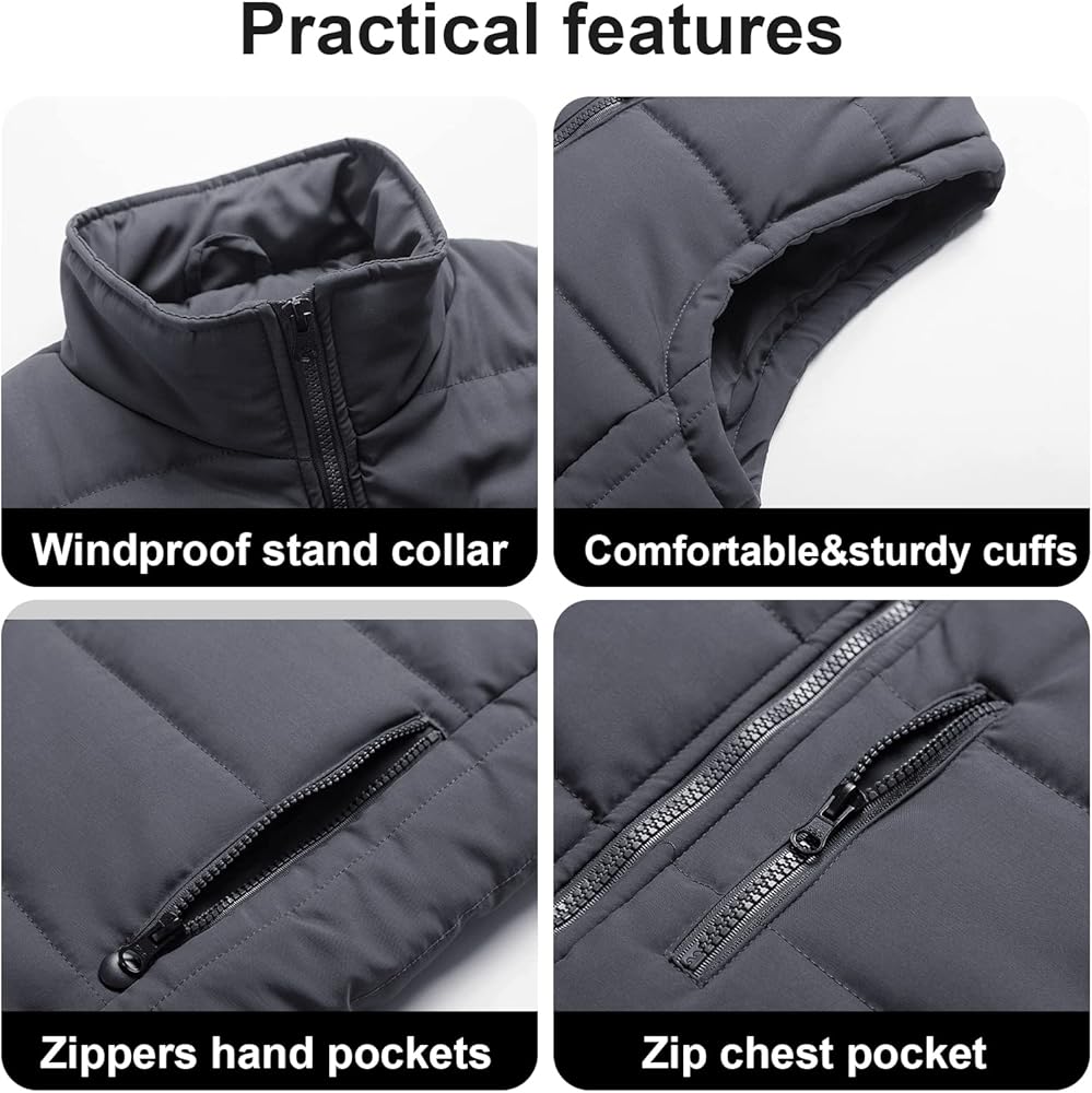 Chrisuno Men's Puffer Vest Casual Stand Collar Quilted Waistcoat Outdoor Padded Ski Vest