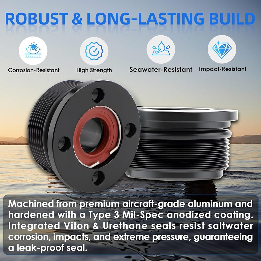 【MILITARY-GRADE DURABILITY & LEAK-PROOF】 Machined from premium aircraft-grade aluminum and hardened with a Type 3 Mil-Spec anodized coating. Integrated Viton & Urethane seals resist saltwater corrosion, impacts, and extreme pressure, guaranteeing a leak-proof seal.