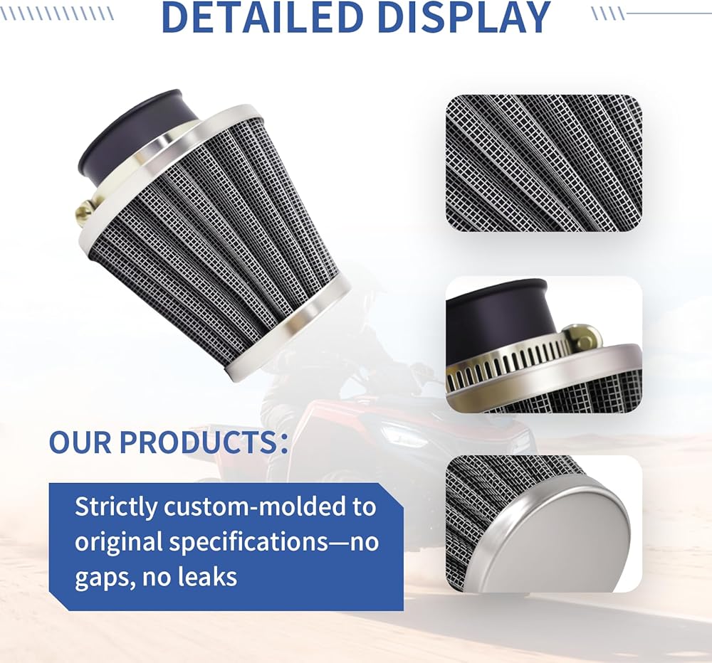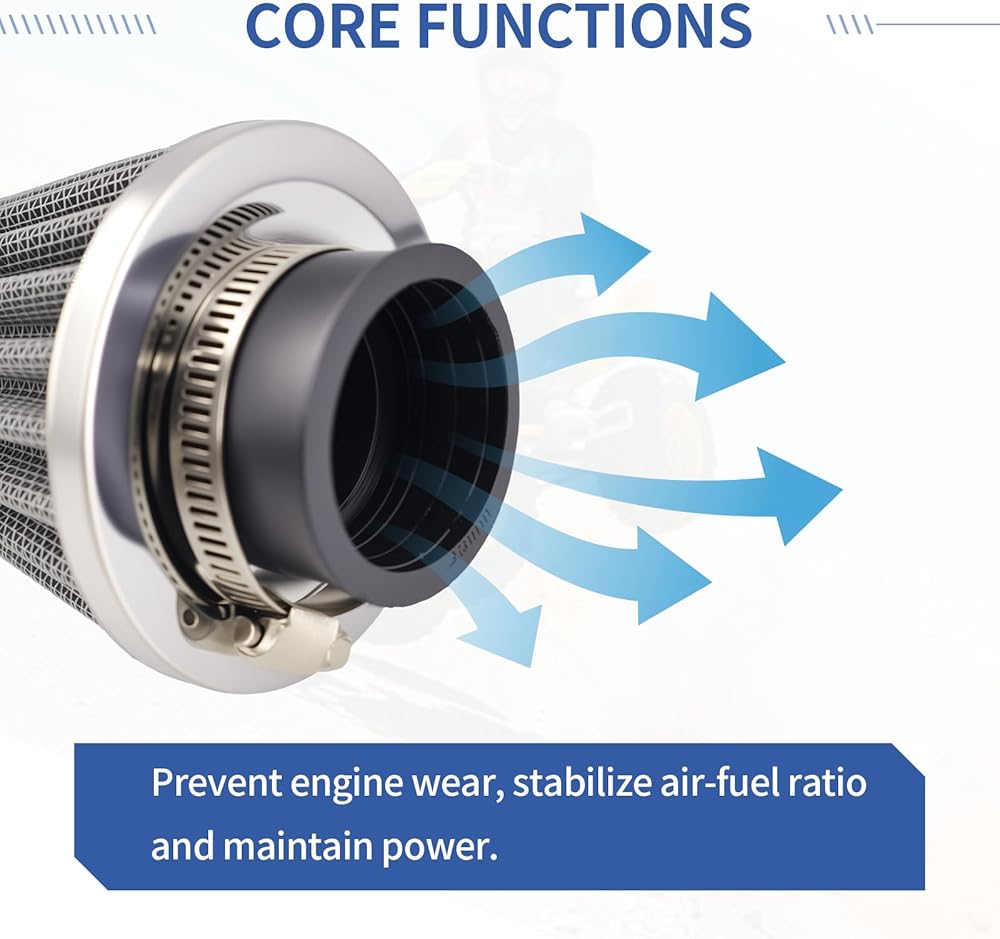 【Durable & Reliable】 Equipped with a thickened outer metal protective layer,air filter boasts excellent impact resistance—effectively shielding the filter element from collisions, scratches, and deformation during off-roading or rough rides. The reinforced metal structure maintains the filter's shape stability, preventing damage to the core filtering material and ensuring consistent airflow & filtration performance for long-term reliability.