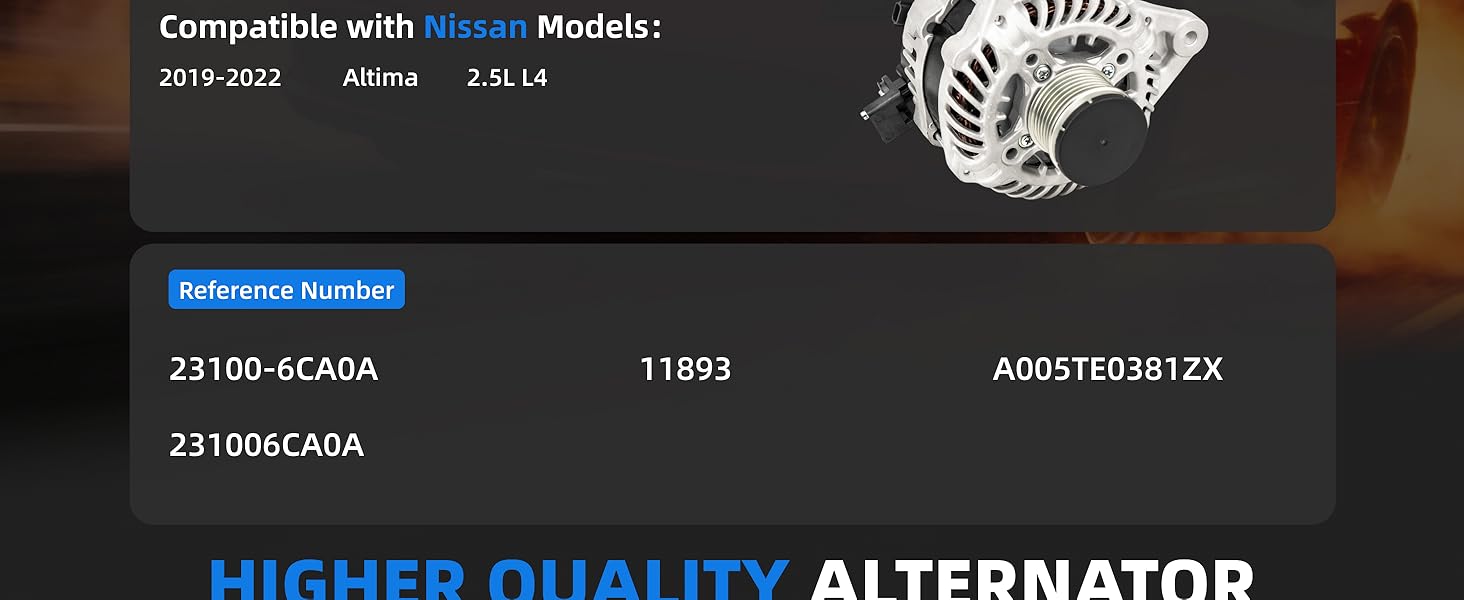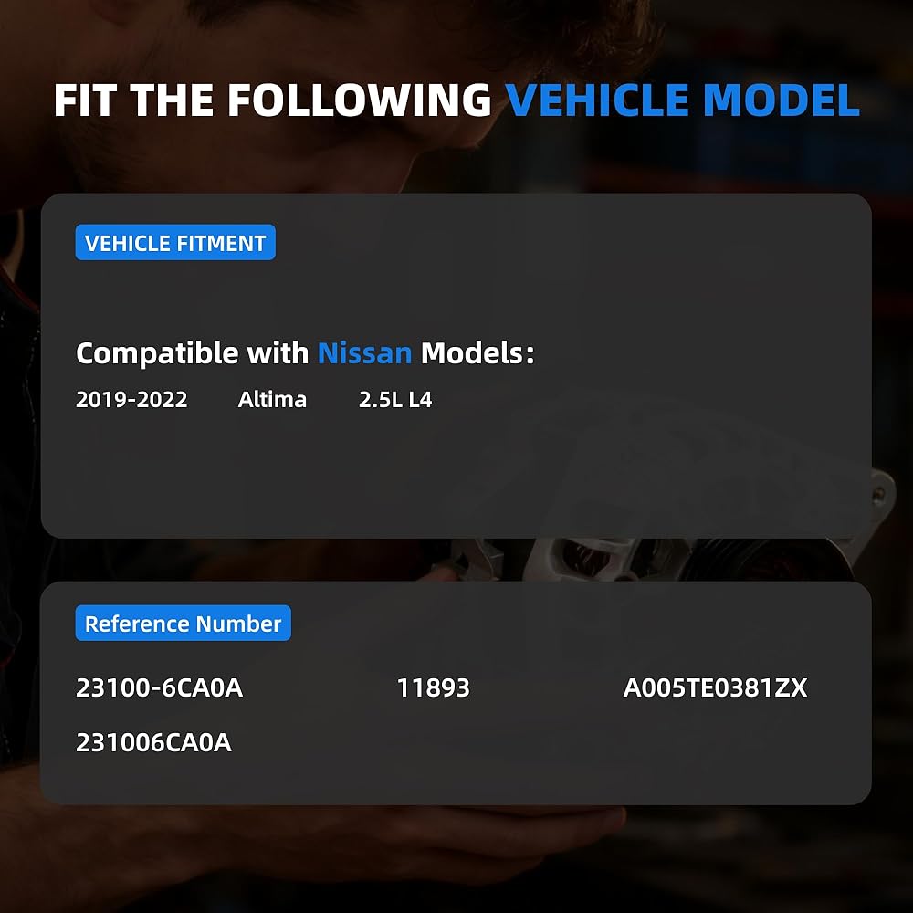【Exact Fit & Broad Compatibility】: Direct replacement alternator fit for (23100-6CA0A,11893,A005TE0381ZX,231006CA0A). Verify your vehicle details and part number for a perfect, hassle-free fitment