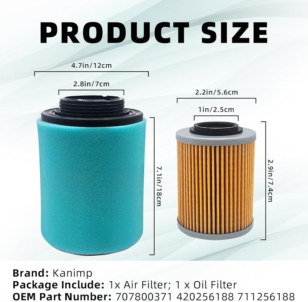 [Replacement Part Number]: Air Filter 707800371 and Oil Filter 420256188/711256188. Please check your vehicle's required filter size and the original OEM code before purchase.