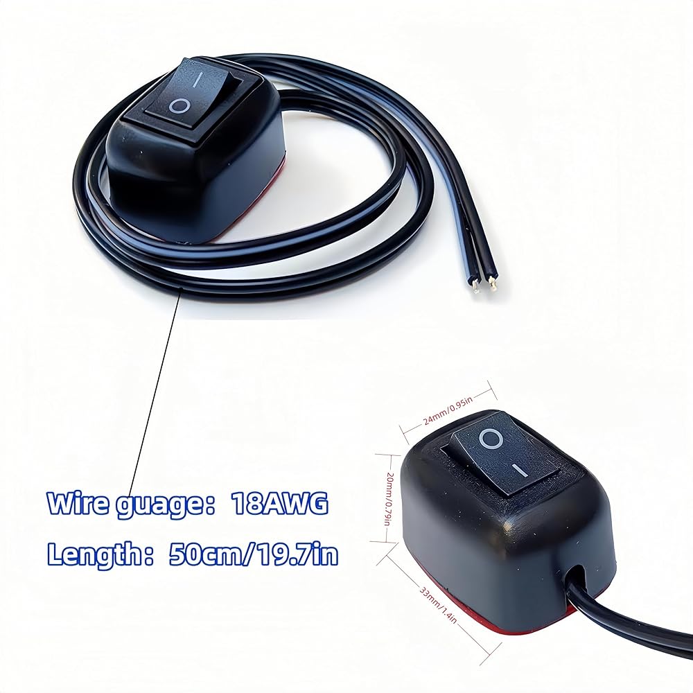 Specifications: Switch dimensions: 33 × 24 × 20 mm / 1.3 × 0.95 × 0.79 inches; Includes 18AWG cable with 50 cm extension length; Current: 10A, Voltage: DC 12V.