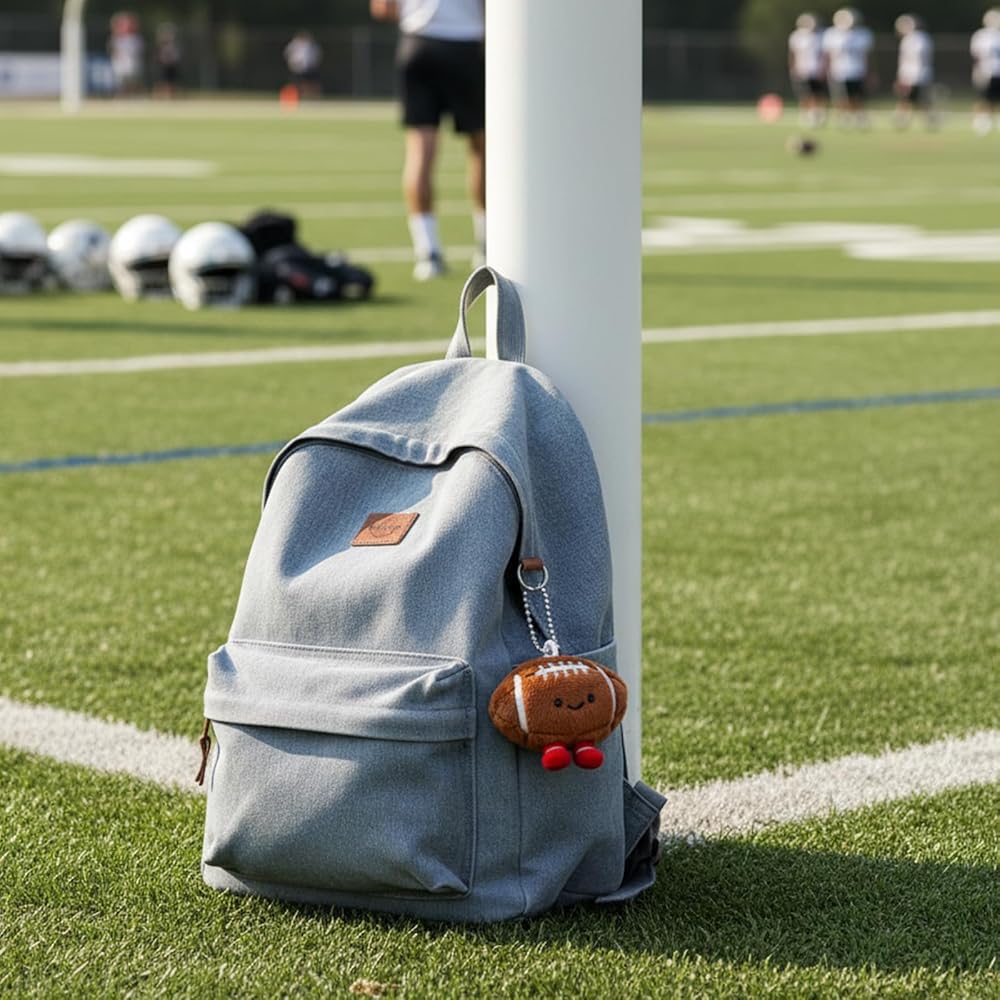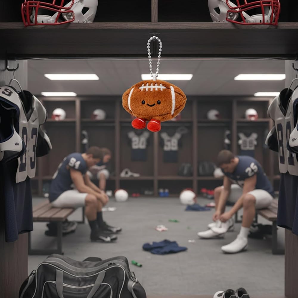 Football Keychain Design: This plush football keychain features authentic sports details with soft construction; The compact size makes it convenient for attaching to keys, backpacks, and bags; Perfect accessory for football enthusiasts and sports fans; Includes durable clasp for stable attachment