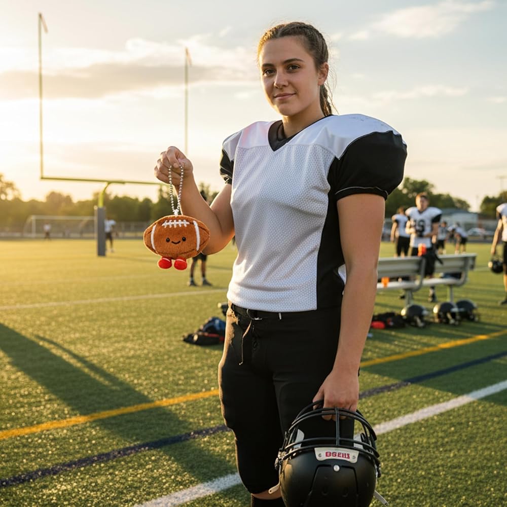 Football Keychain, Soft Sports Key Ring for Keys and Backpacks, Decorative Accessory for Football Fans, Ideal Party Favor Gift for Guys, Portable Collectible Keychain Football Keychain Design: This plush football keychain features authentic sports details with soft construction; The compact size makes it convenient for attaching to keys, backpacks, and bags; Perfect accessory for football enthusiasts and sports fans; Includes durable clasp for stable attachment Premium Material Construction: Made with high-quality materials that provide soft texture and durability; Reinforced stitching ensures long-lasting use during daily activities; Lightweight design adds minimal bulk to your keychain collection; Suitable for repeated handling and display Versatile Usage Scenarios: Attach to keys for easy identification and quick access; Decorate backpacks, luggage, and sports bags with this charming accessory; Display as room decoration in dorm rooms and offices; Carry as portable collectible during travel and outdoor events User-Friendly Features: Simple clip-on design allows for easy attachment; Compact dimensions fit comfortably in pockets and small compartments Emotional Connection: Evokes sports enthusiasm and team spirit among football fans; Makes thoughtful gifts for birthdays and special occasions; Creates memorable moments for collectors and sports memorabilia enthusiasts; Adds personal touch to everyday accessories and belongings
