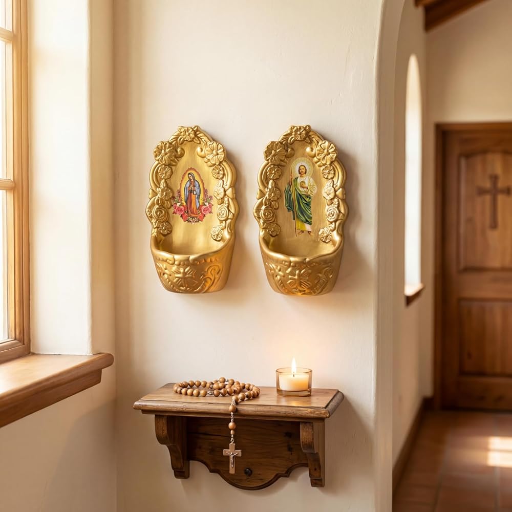 This 2 set holy water holder makes an inspiring gift for Catholic milestones like First Communion, Confirmation, or Easter. A holy water font is a meaningful way to support loved ones on their faith journey.