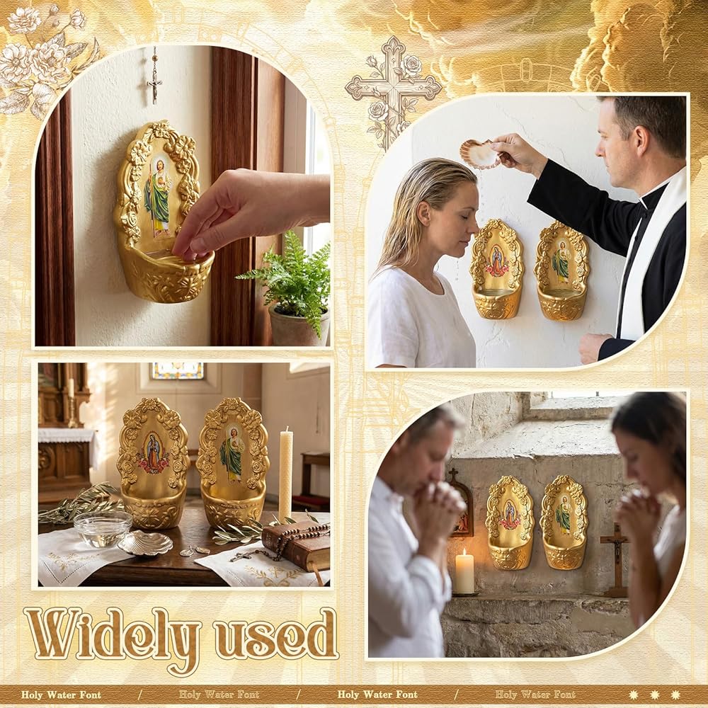 Designed to suit Catholic celebrations, these holy water containers can be a centerpiece or a practical addition to spiritual gatherings, adding a serene touch to any festive occasion.
