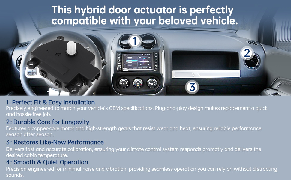 Easy replacement: Replacing your faulty blend door actuator is straightforward with this direct - fit replacement part. Designed to match the original standards, it seamlessly integrates into the HVAC system of your vehicle.