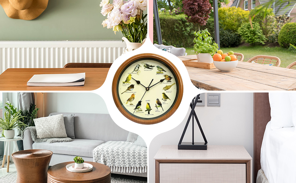 【Wide Application】Bird Clock With Sound, silent running movement, 10 inches in diameter, easy to hang, suitable for bedrooms, living rooms, study rooms, offices, etc.