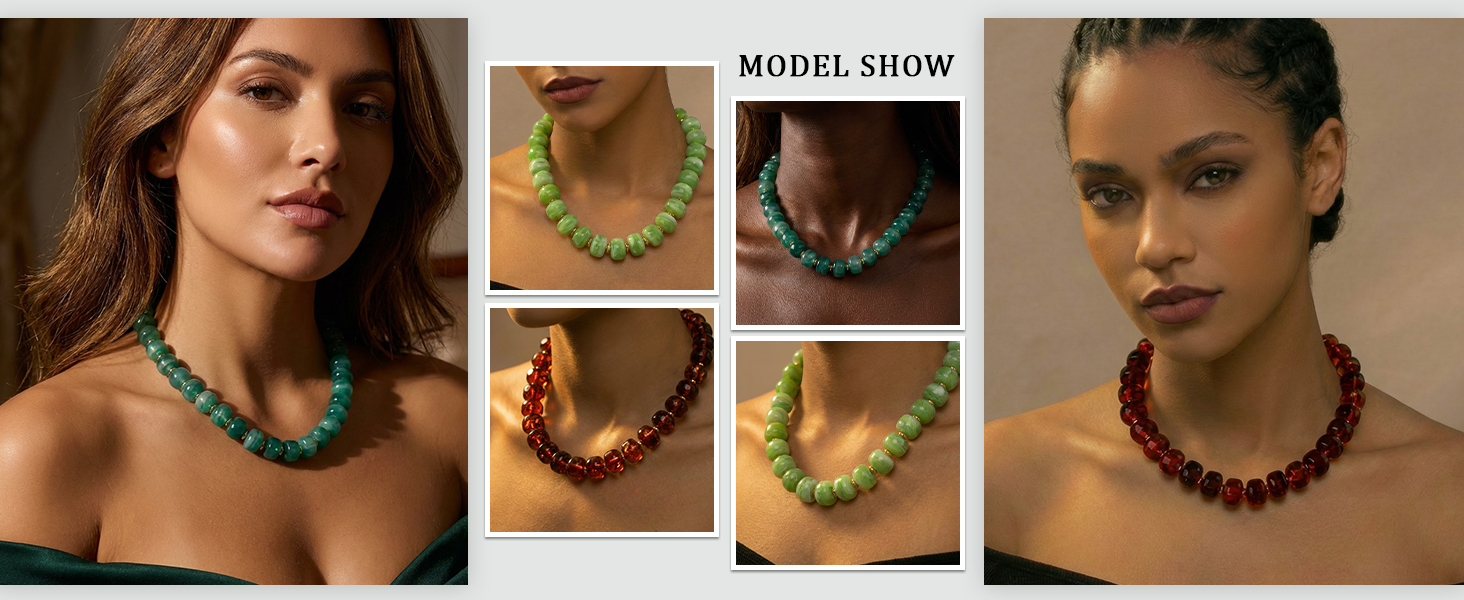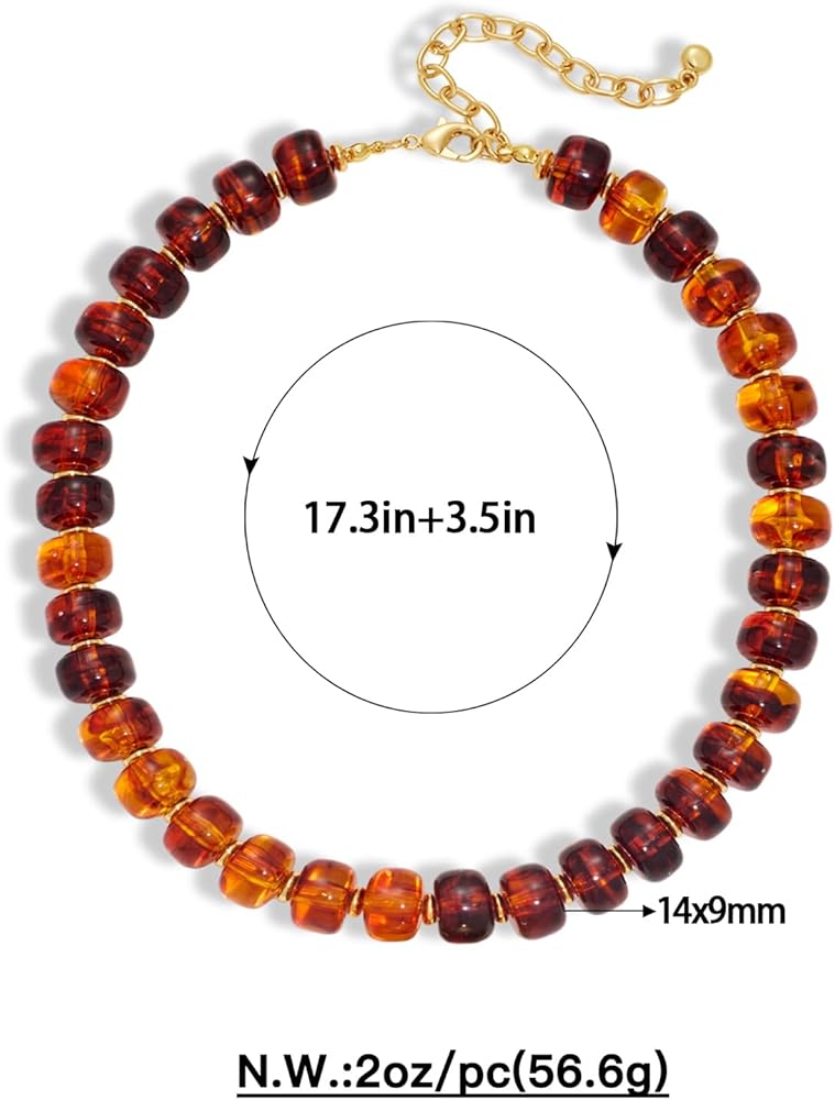 Artistic Beaded Construction: As a premier beaded necklace for women, it boasts an artful arrangement of chunky amber resin beads and gleaming gold beads. This chunky beaded necklace design offers a tactile and visually appealing piece of artisan-style jewelry.