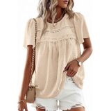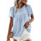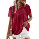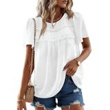 Features: Trendy boho tops for women features a crewneck, short sleeve, crochet lace edges, pleated front and back, loose fitting and flattering fit; The puff sleeves and lace detailing make this shirt very feminine; The charming babydoll silhouette design with adorable pom-pom swiss dot fabric makes this casual blouse texture and vibrancy