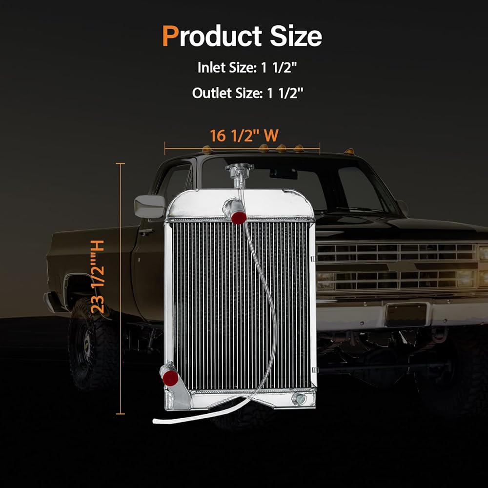 SIZE--Core Dimensions:17-1/4" x 15-3/4"; Overall Dimensions: 25-3/16" x 16-1/4"; Inlet Size:1 1/2";Outlet Size:1 1/2".please check the size before you buy! All Aluminum 2mm thick tanks and fittings,Ensure it's hard and sturdy