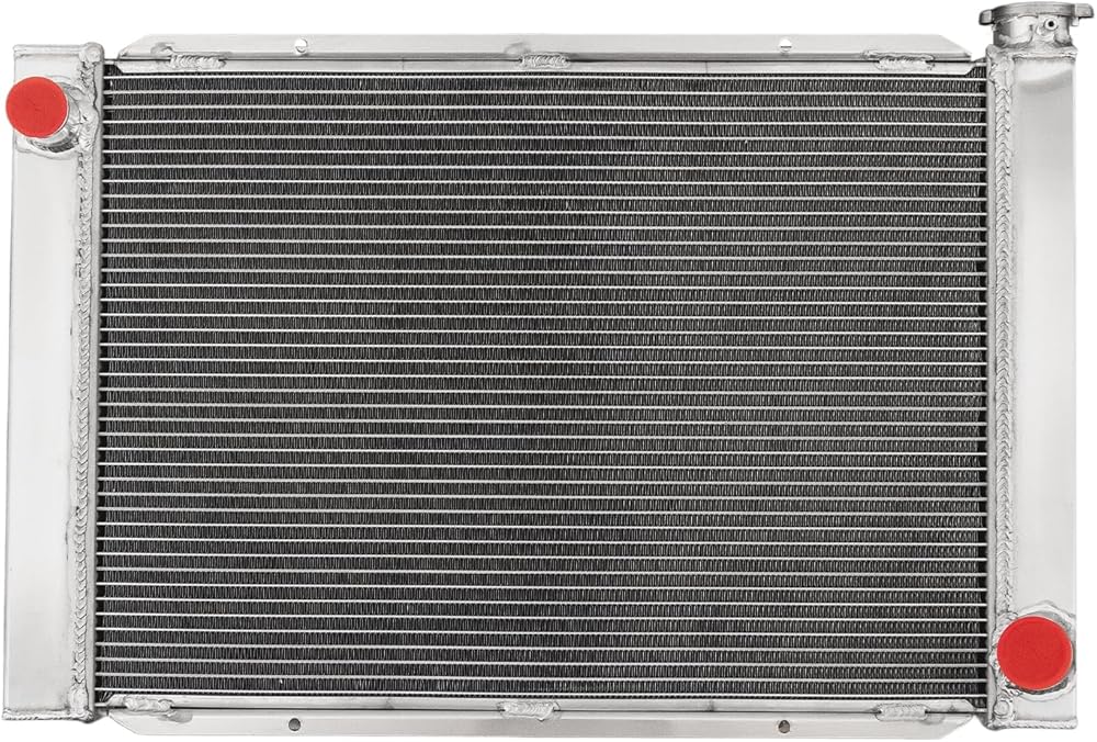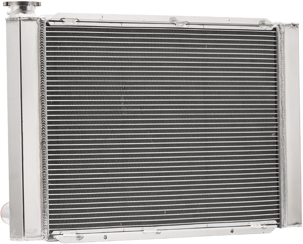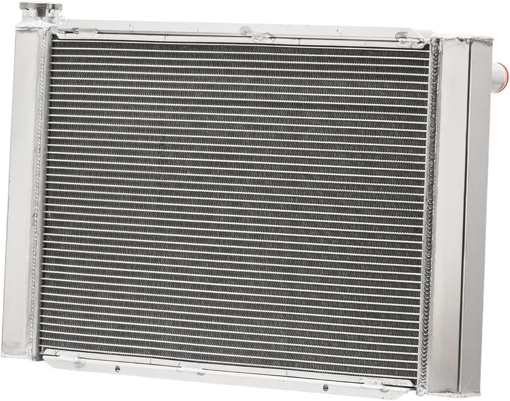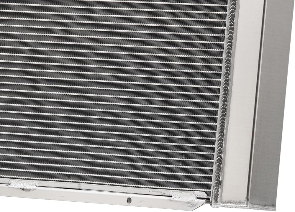 [Feature] 4-Row Crossflow Radiator, coolant capacity exceeding OEM specs. constructed with Louvered Fin technology 14-16 Fins Per Inch, 3/8" Spaced Tubes heat dissipation efficiency improved by 40%+. equipped with zinc Alloy cap, constructed with Aluminum 2MM Thick Tanks & Fittings, Stronger Billet Filler Neck, Aluminum Brackets, 100% Tig welded, Stronger and Durable