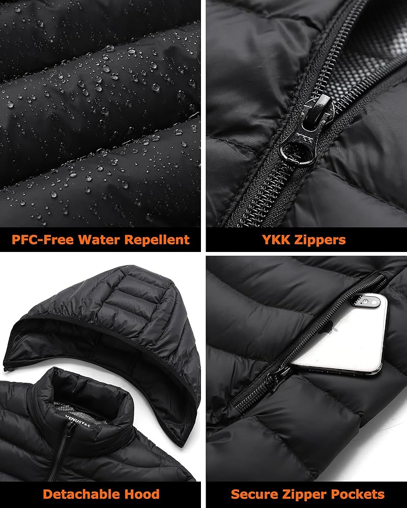 LIGHTWEIGHT & BREATHABLE FABRIC - Breathable ultra light material, water-resistant coating, comfortable nylon fabric and hem seal in warmth. It has excellent windproof and warm-keeping quality, ensure you be able to enjoy exceptional warmth while still maintaining your peak performance in many ways with unrestricted movement!
