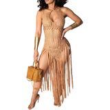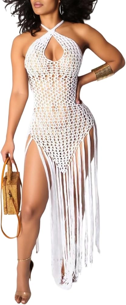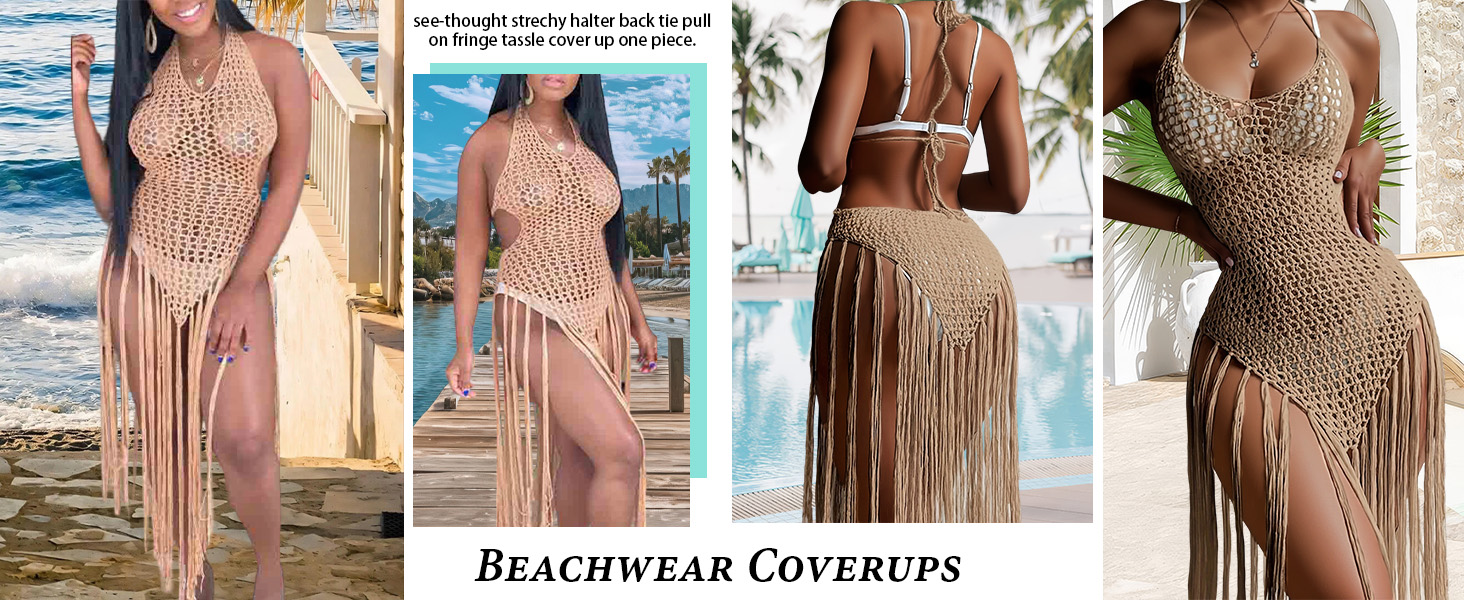 Sexy Beachwear: This halter swimsuit cover up is a back tie swimsuit, which is designed with long tassel cover up. And the factor of fringe beach vacation is classic and stylish, which is flowy when you walking or dancing near the beach, pool, cruise.