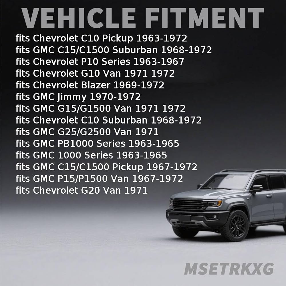 Buyer Guide: Suspension Control Arm Shaft Kit fits Chevrolet Blazer 1969-1972 fits Chevrolet C10 Pickup 1963-1972 fits Chevrolet C10 Suburban 1968-1972 fits Chevrolet G10 Van 1971-1972 fits Chevrolet G20 Van 1971 fits Chevrolet P10 Series 1963-1967 fits GMC 1000 Series 1963-1965 fits GMC C15 C1500 Pickup 1967-1972 fits GMC C15 C1500 Suburban 1968-1972 fits GMC G15 G1500 Van 1971-1972 fits GMC G25 G2500 Van 1971 fits GMC Jimmy 1970-1972 fits GMC P15 P1500 Van 1967-1972
