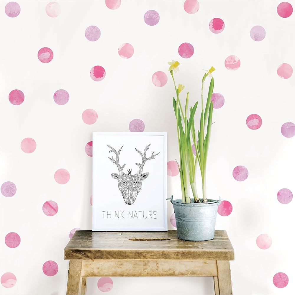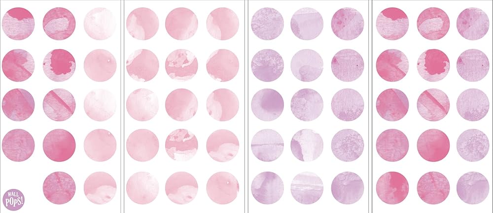 The prettiest polka dots we ever did see! arrange these pink watercolor dots in a uniform grid or create your own free-form design. Watercolor dots wall art kit contains 59 pieces on 4 sheets that measure 17.25 x 9.75 inches.