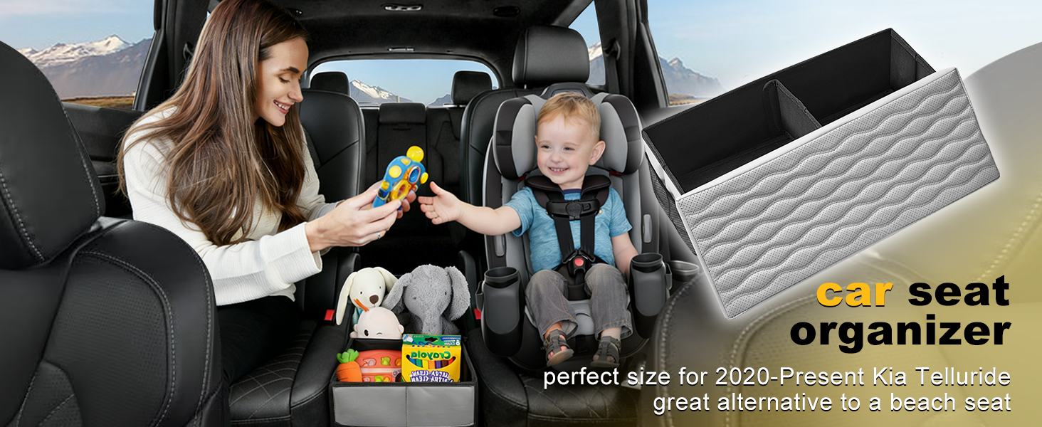 Telluride Car Back Seat Organizer Storage: The grey car seat organizer is compatible with the 2020-2026 Kia Teluride. Back seat car organizer is the perfect size to fit the middle of the second-row seats.